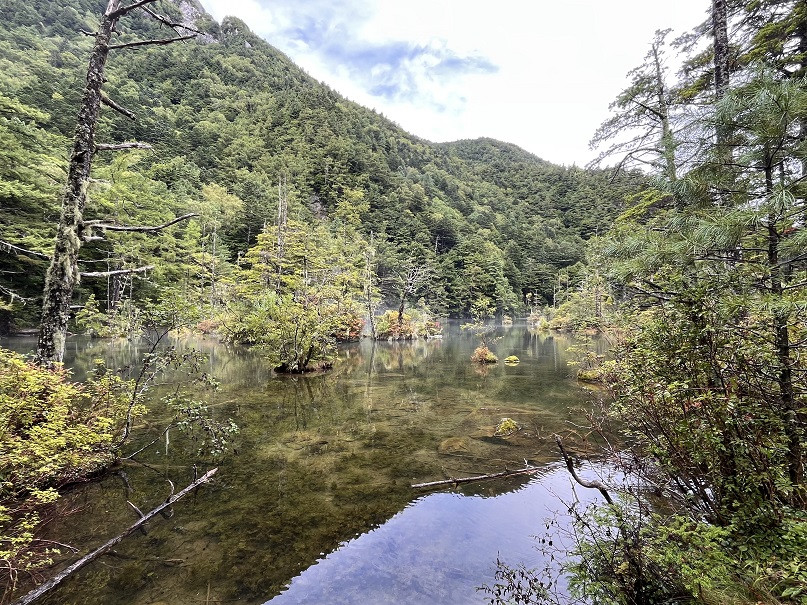 天降大雨,不得不身披雨衣徒步3小时,到明源桥,折返回程,顺道看了明神池(门票500日元,约25元人民币,这是第一次付景点门票),景色绝美。