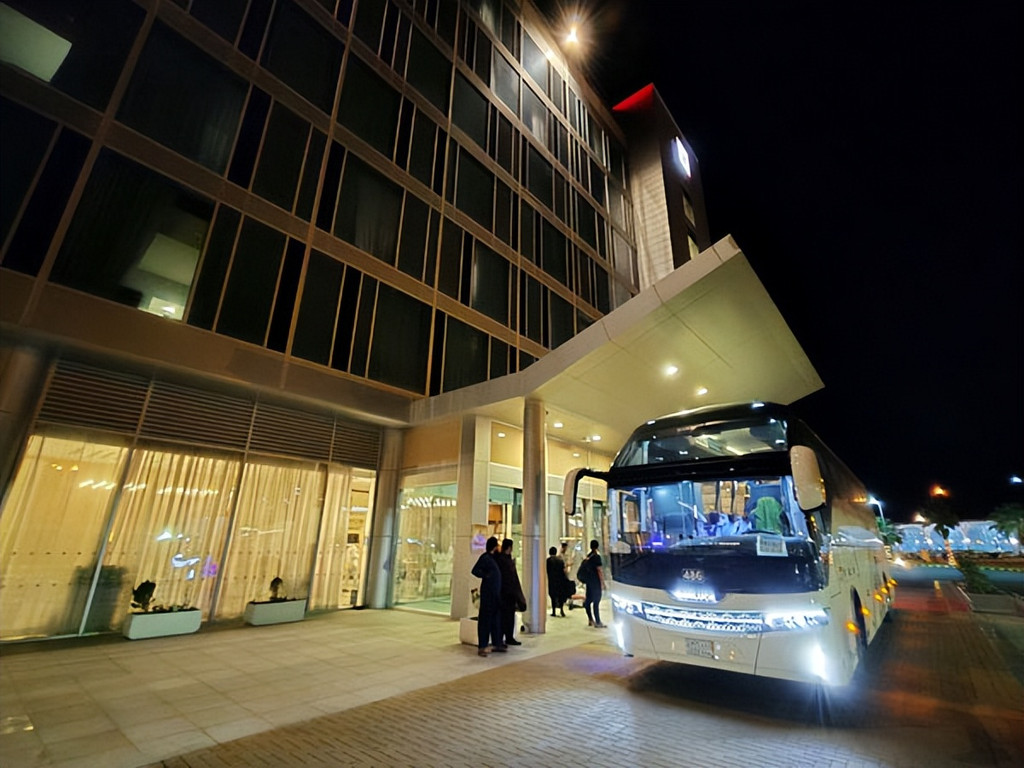 2023.11.11,中东行团队开启从吉达前往沙特阿拉伯的世界第二大伊斯兰圣地麦地那的行程。原计划上午8点出发,但因所定车辆途中发生事故,耽误了近1小时更换了一辆崭新的中国江西客车厂生产的百路佳(BONLUCK)豪华大巴。