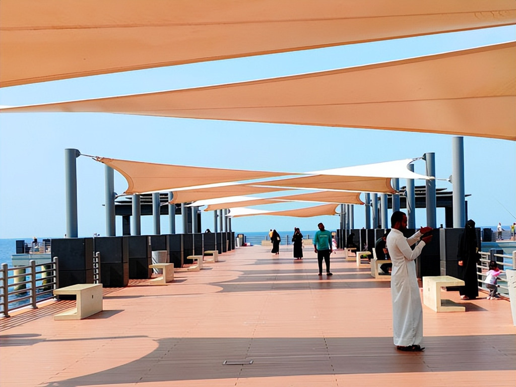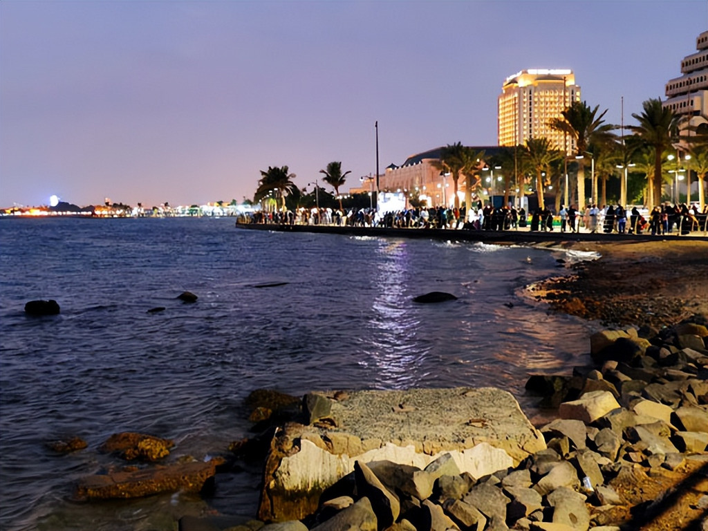 沙特时间11:50,探秘中东行团队在沙特吉达观光的第二站是漫游吉达海滨大道。这里其实距离海上清真寺的北侧的海畔。漫步不远,即可到达餐厅和咖啡馆群,这是一个十分清净的所在。人们可以在这里进行一些夏季活动,如游泳、钓鱼、散步、慢跑、发呆和在海滩周边放风筝。