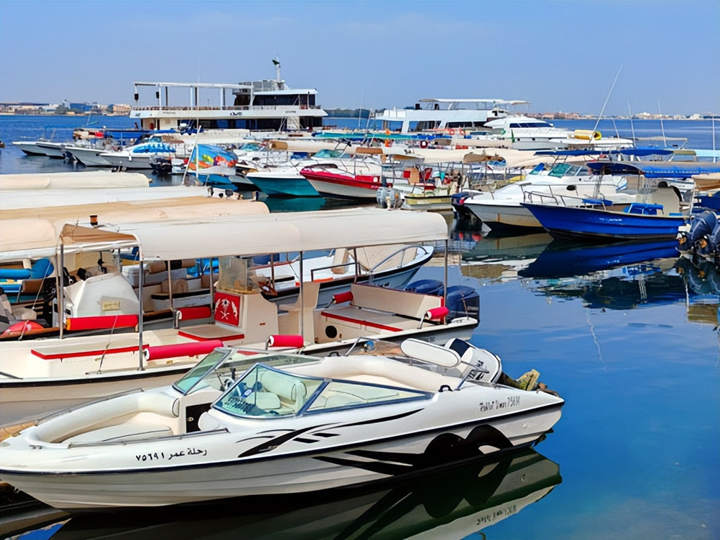 沙特时间13:20,结束了一上午吉达观光的探秘中东行团队,在领队谢泽雁与地陪导游吴学峰的带领下,来到吉达游艇俱乐部乘游艇泛舟畅游红海。