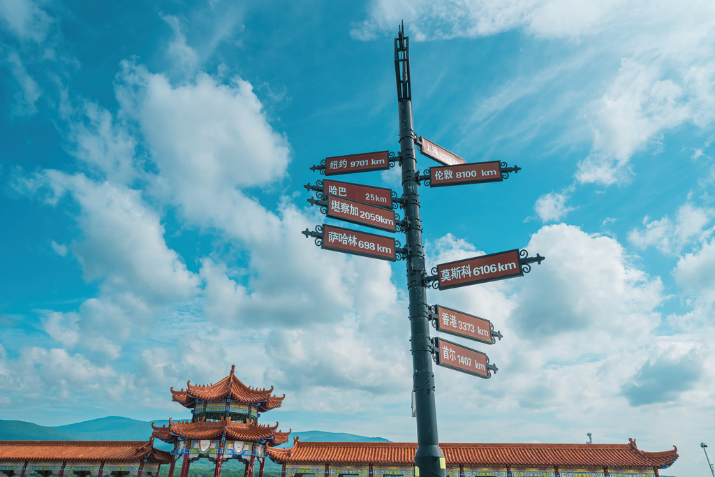 走进东极广场,远远即可见一个以东字为标志性的建筑,一个东字,以高39.5米的东极极标雕塑为桅杆,彰显中华神韵,以昂然挑起的河口观景广场为舰艏,象征着中国这艘巨轮正起航驶向东方,而"华夏东极"抚远,则正是这艘中华巨轮高昂的船头,每天都在为祖国迎来最新的一轮朝阳。