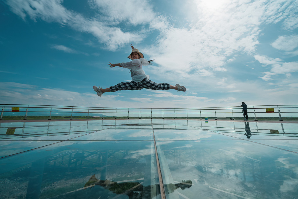 观景平台处的天空之镜,拍照打卡皆是呈现海天一色的感觉。喂完熊后,一定不要错过这个美丽的地方。