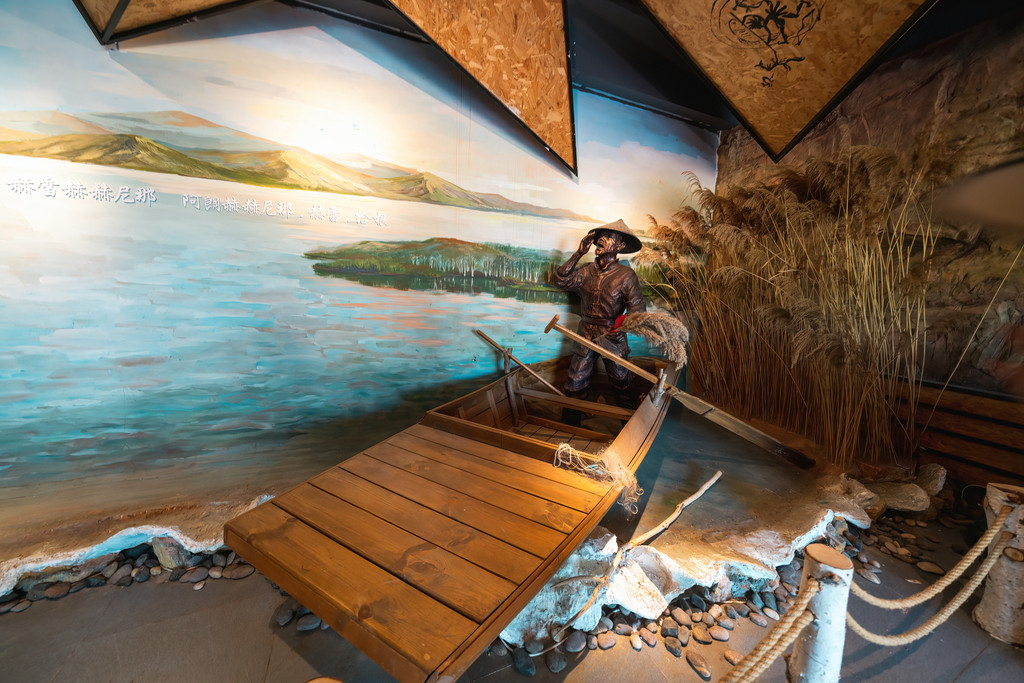 伴随着歌声,仿似穿越了时空,这里展示着关于赫哲族的过往,故事,一代又一代人的智慧呈现,以及对美好明天的追求和向往。展馆共两层,展示着赫哲族人生活习俗、习惯、以及劳动生活的场景,眼前这一幕幕还原着赫哲族人的故事与传说。