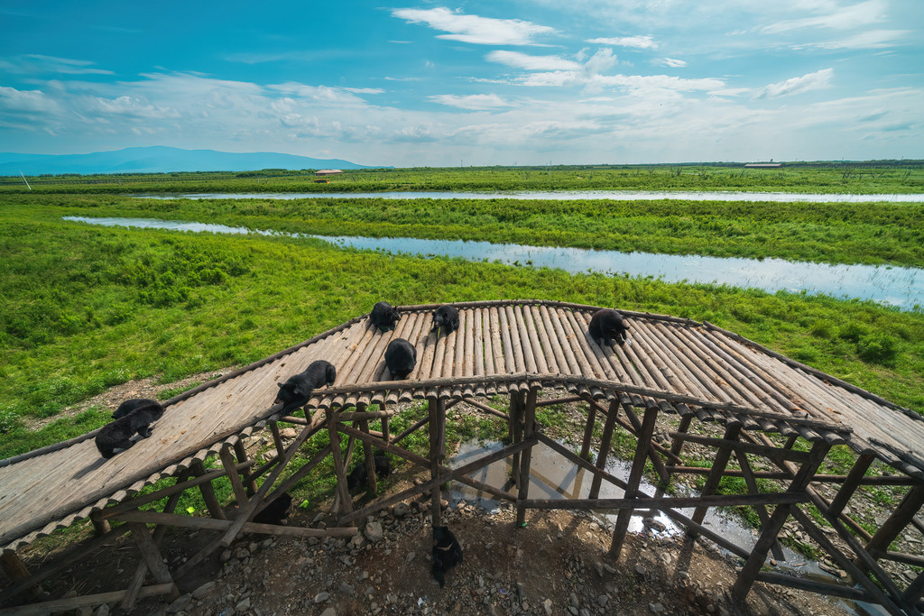 湿地公园是黑瞎子岛上原始自然风光与人为建筑最为完美结合的景点之一。