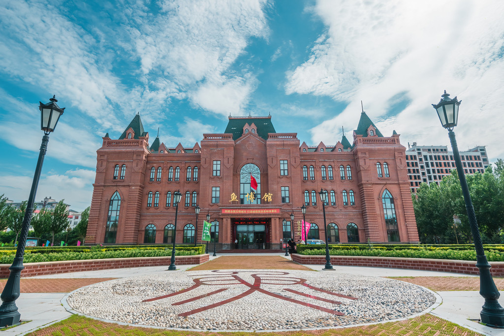 鱼博物馆整个博物馆建筑风格极具俄式风格,在正门望去,可以看到地面上一个大大的鱼字图案,走进博物馆,仿佛走进了海洋,各种鱼分类展示,还原抚远淡水鱼类的生活环境与场景,让人对抚远的鱼文化有了更深层的了解。