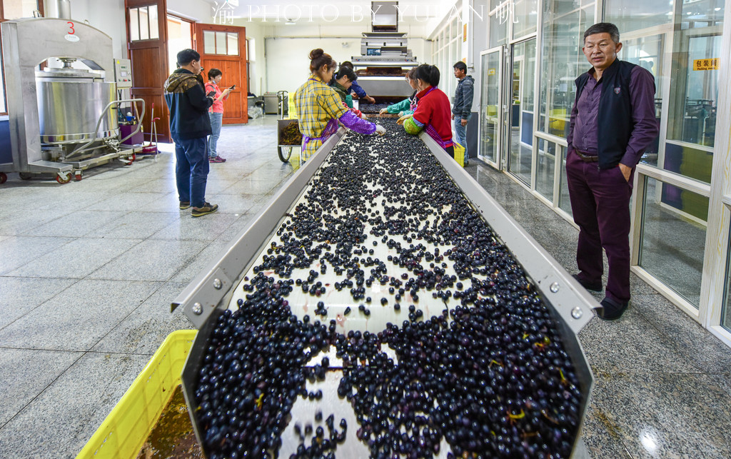 工作人员说“好酒是‘种’出来的,这些葡萄不仅要人工除草,还要限产,原本能达到亩产3000斤,他们限制在亩产800斤,就是为了保证每一颗葡萄的品质”。集安处于世界“葡萄酒黄金纬度带”,与法国著名的葡萄黄金产业带波尔多相近,土壤、降水、日照等气候条件对山葡萄生产极为有利,拥有丰富的抗病性野生葡萄资源。长白山系老岭山脉抵御着北方寒风,温润的海洋气流沿鸭绿江溯源而来,让这里形成了半大陆半海洋性气候,所以又有东北江南之称。