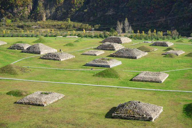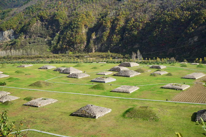 王公贵族的陵墓。早期的石头垒筑,后期的是土堆的。
