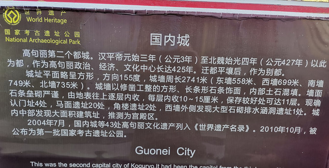 据介绍,高句丽从五女山城迁都国内城之前,于公元 3 世纪所建。国内城略呈方形,周长 2741 米。内外两壁全部以长方形石或方形石条垒砌。