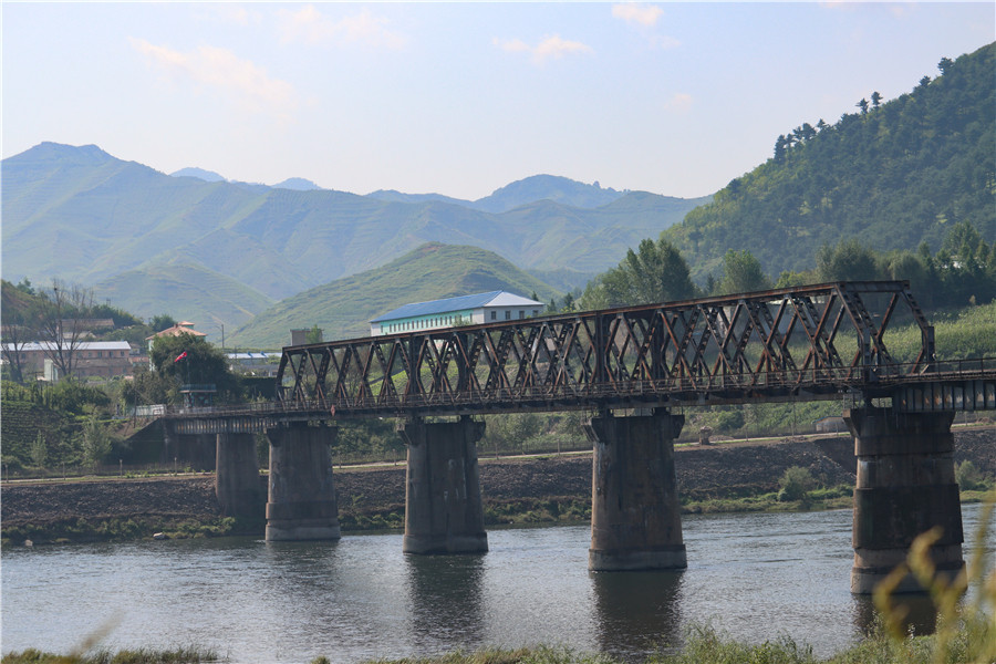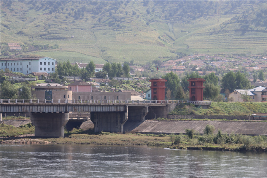 大桥修建于1937年,日本占领东三省,为守卫大桥,也为了防止抗日联军逃往朝鲜建的炮楼,内有卧室、厨房、卫生间和弹药库。志愿军用它做过防空火力点,打击美军机。经过战争的洗礼,岁月的拷打这座充满历史背景的大桥依然完好无损地保存至今,让人叹为观止。感受国门的庄严和神圣,重温昨天的历史,认清“一切反动派都是纸老虎”。