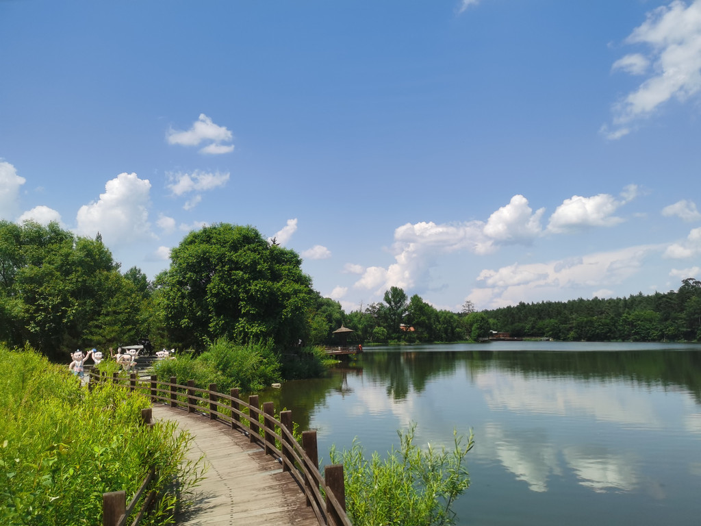 离长白山旅游集散中心,二道白河镇越来越近了。二道白河镇位于长白山脚下,因长白山旅游而发展起来的一美丽的小城。导航直奔美人松廊桥公园,穿过旁边的云顶市集,云顶市集应该是晚上才开,中午没什么人,市集小铺也基本不开门。再往前走就是雕塑公园,公园旁边有个小木屋,里面有很多免费的长白山的章可以盖,来这,主要是为了盖章。
