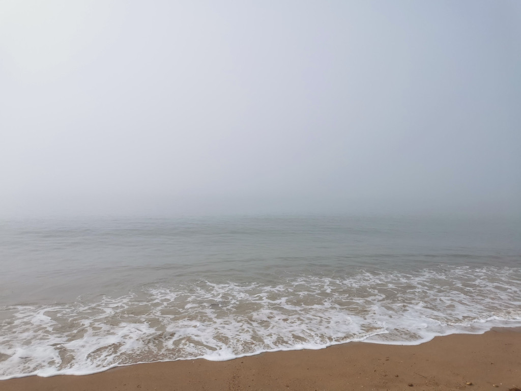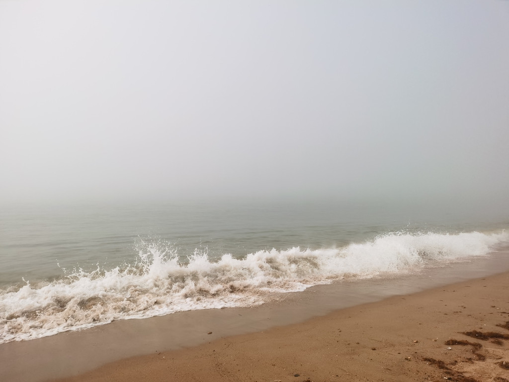 早上离开大连之前,还是去金石滩转转,也算是见过大连的海了,结果,这个季节的海边,早上都是能见度极低,大雾弥漫,开车到黄金海岸停车场,海边没什么人,只见零星几人在晨练,走在沙滩上,感觉海水还算干净,就是能见度太低,吹了会潮湿略带腥味的海风,离开大连,沿着G228国道转鹤大高速前往丹东。