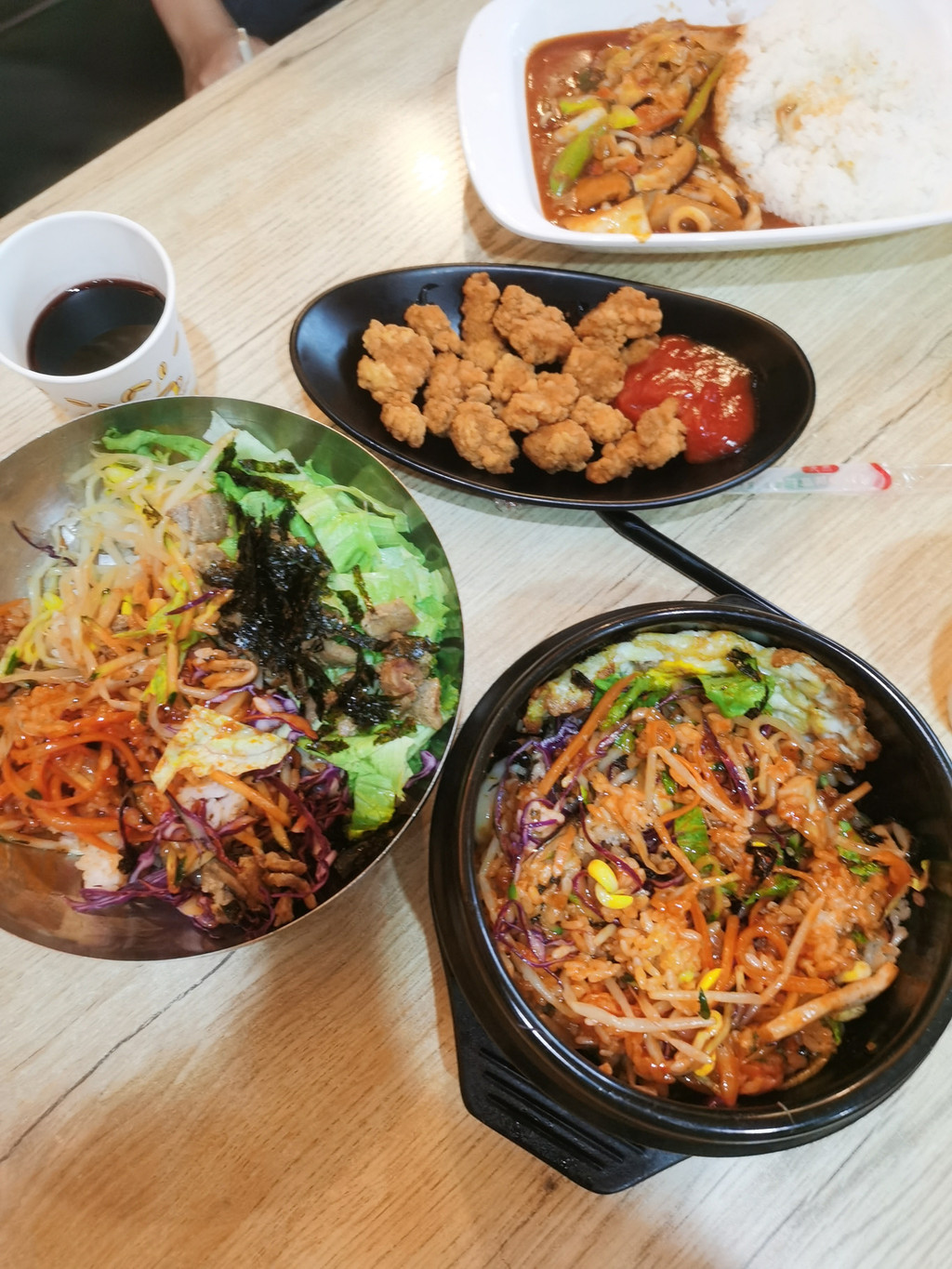 网上看了延吉几家有特色的吃饭的地方,都排队非常严重,真心不想去挤。就向明太文创店老板打听,附近有啥吃了,老板推荐了一家当地人吃的比较多的石锅拌饭,我们走路溜达过去,点了几样,确实味道还行,价格适中。