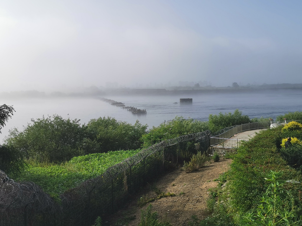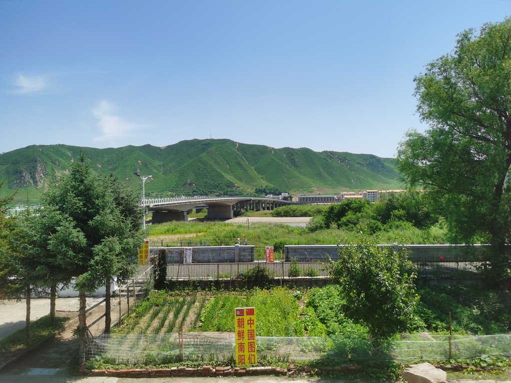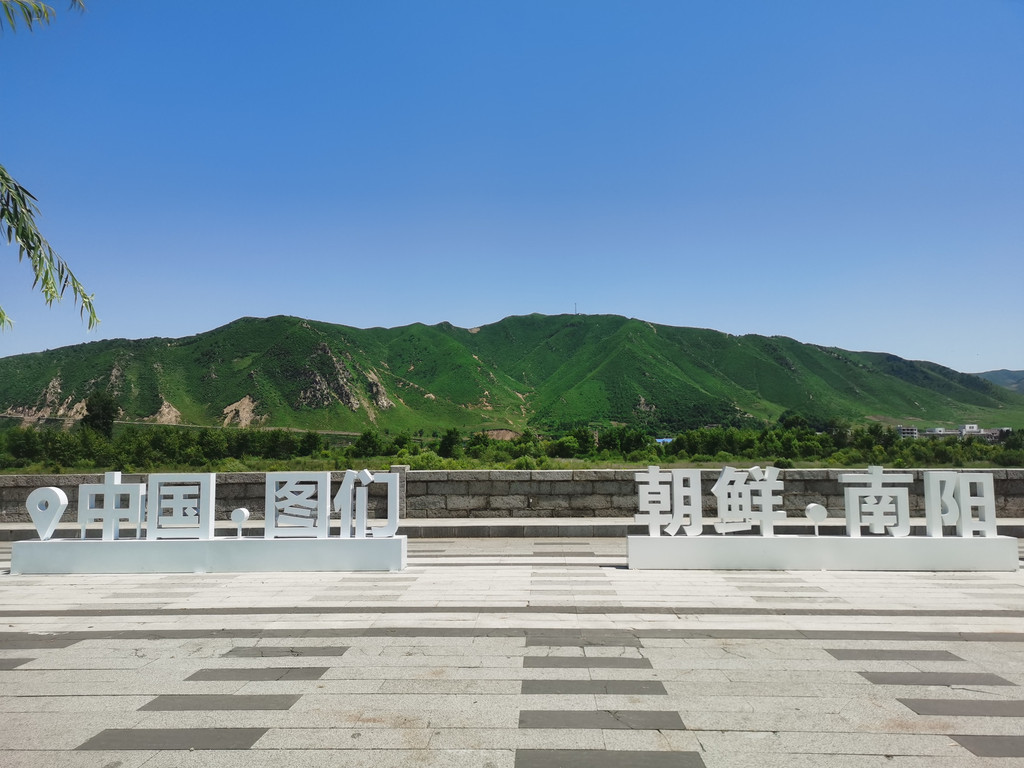 一边是图们江,一边是日光山森林公园,登上南阳亭,江对岸就是朝鲜南阳市。