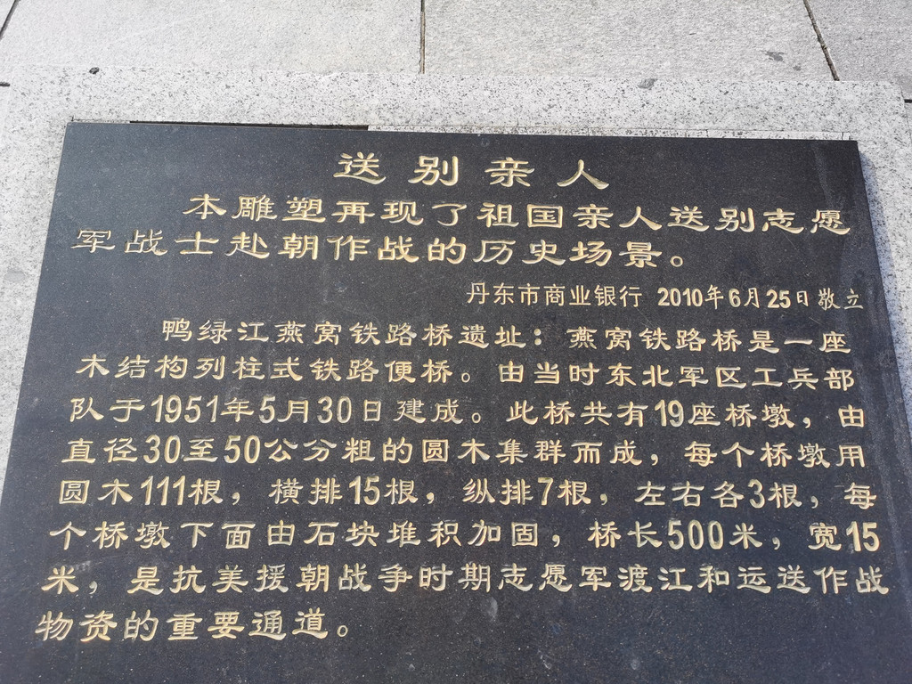 抗美援朝战争开始后,中国人民志愿军便从这里开赴朝鲜战场;大批的军需物资、武器装备从这里运往前线;支前的担架队、民工队也从这里入朝参战。丹东真正成了祖国大后方的前沿阵地。