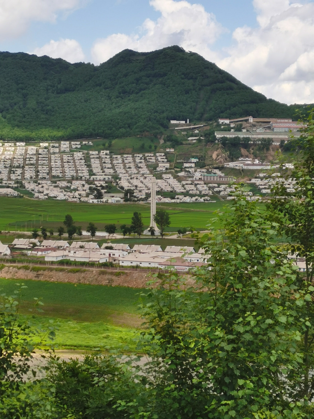 等娃吃完早餐,收拾行李退房,出发去国门。国门口岸附近,开车正转悠,路边东北大姨,上来问我们,带我们去看国门,还有什么朝鲜穷人区、富人区之类的,全程跟着我们讲解,二大一小收费100(国门景区门票60一人,景交车20一人)。东北大姨特别热情,又能聊会聊,一路跟我们聊着对岸朝鲜,各种新鲜事、稀奇事,什么窗户都没玻璃了,什么烧大柴的汽车,什么东北男人在朝鲜很吃香啦,乐的我们一路跟着傻问,情绪价值拉满,一直带着我们玩了近2个小时,最后娃的评价是,这100块花的超值。