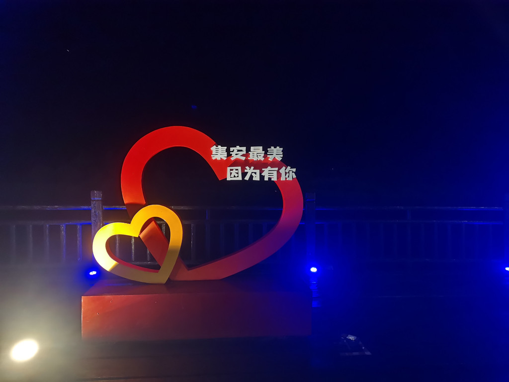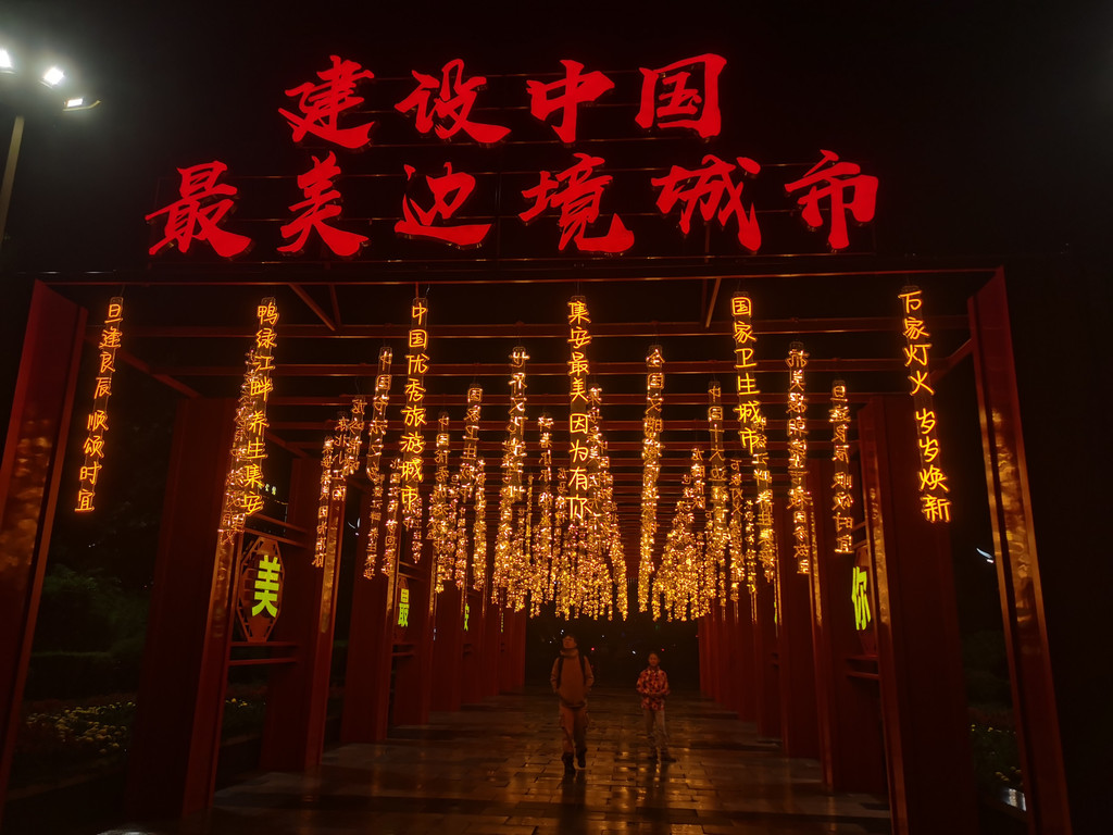 雨后的广场上,空气清新,气温略低,甚至我们都穿上了长袖外套,只有我们在慢慢欣赏着夜幕下、光影中的集安。