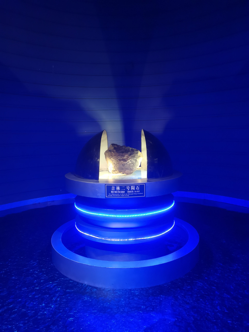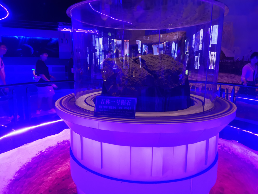陨石馆有专门的讲解人员,到时间场次,才会开门,领着预约了这个时间段的游人一起参观讲解,首先会进入星空隧道,直观感觉各类星云,视觉效果很棒,就是有点头晕;展馆里有各种不同种类质地的陨石,其中最重要的是吉林一号陨石,是世界上目前现存的最大的石陨石。展厅内还细致还原了陨石降落的第一现场以及陨石的全息投影,参观全程约半个小时。