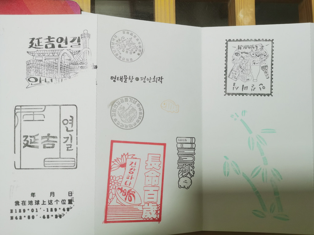 逛完图们,车程一小时左右,到达珲春,此行的最后一个边境口岸城市。到达珲春时间尚早,办好入住,把这几天的衣服洗晒后,出门转转。先去龙源邮局盖邮戳,这个邮局有四个风景戳可以免费盖,日戳必须要盖在邮票上,娃在这个邮局,寄了明信片。
