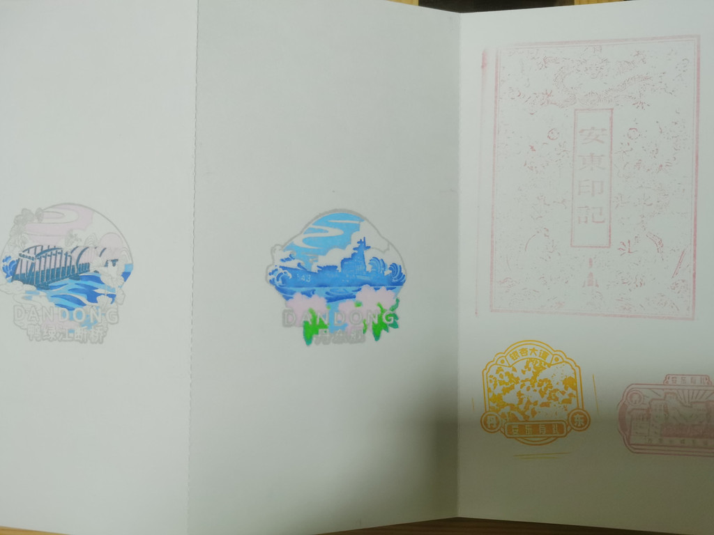 顺着江边一路溜达,想去安东老街转转,顺便吃个晚饭的,走了一半,进了一个文创店,买了一本特别好看通关文碟,准备边境线上一路盖盖章。娃在文创店盖章,我刷了个网,看客评安东老街没啥吃的,果断放弃,掉头步行回酒店,看看路上有什么小店,能吃上丹东的炒黄蚬子、炒叉子。