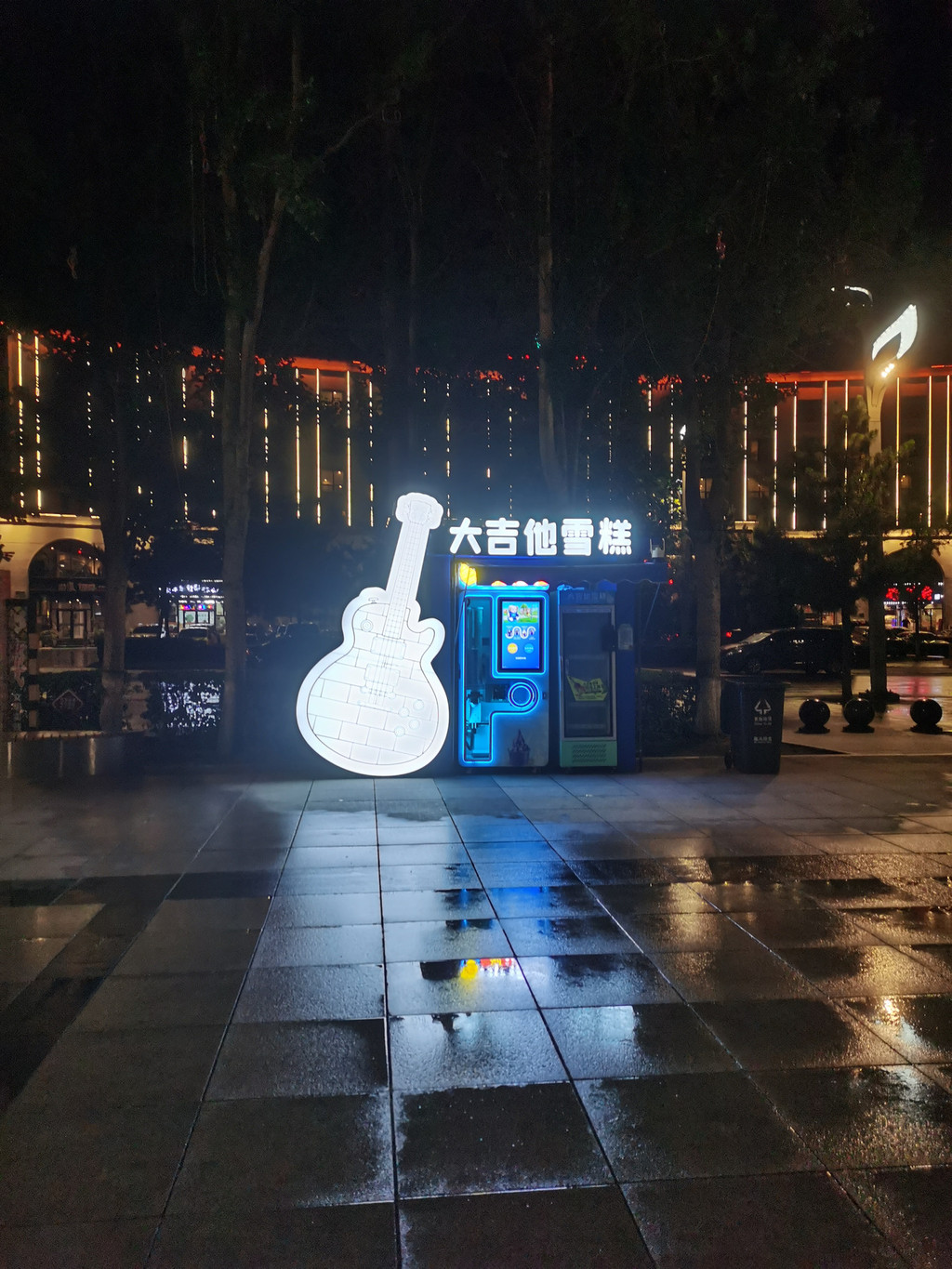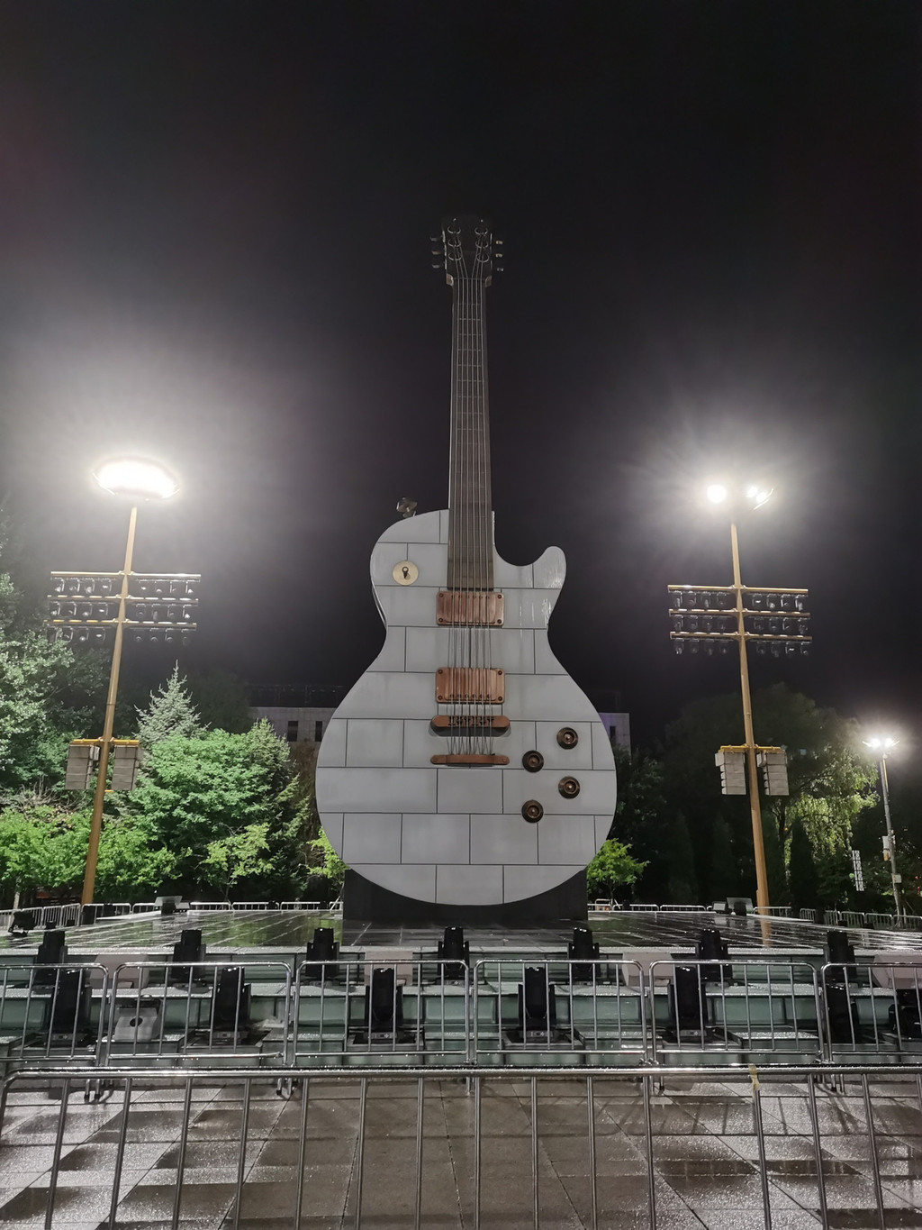 二大一小,点了个超小份火盆,一碗冷面,一壶米酒,吃撑了,都没有吃完。饭后消食,去转转大吉他广场。