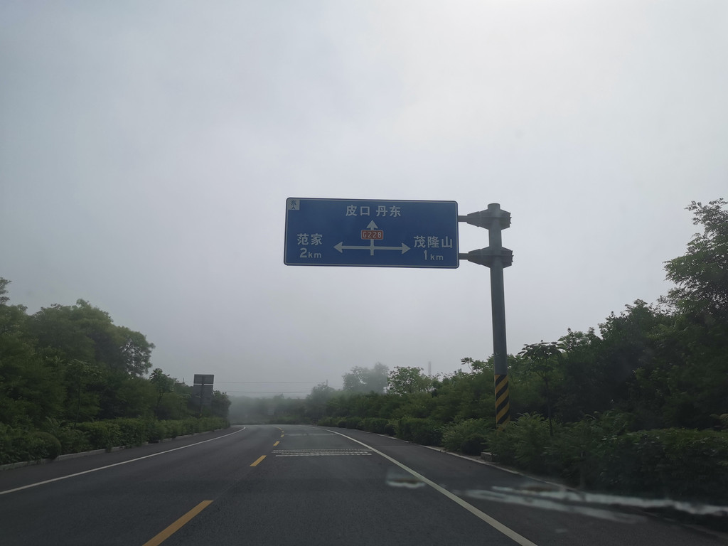 前半段沿着G228走,路况还是不错,路过山口,还是有薄雾。