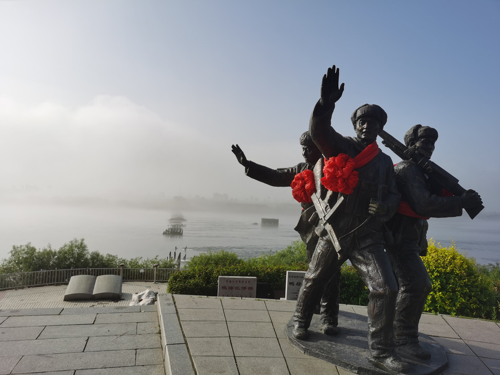 顺着沿江路,就到鸭绿江浮桥遗址,当年这里是重要的抗战物资补给线。