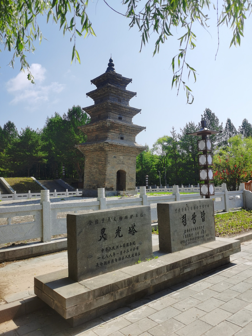 灵光塔位于长白县塔山公园内,,距今已有1300多年历史,是我国现存的唯一一座渤海国时期的佛塔。在这里可以俯瞰整个长白县城和对岸的朝鲜第三大城市惠山市。