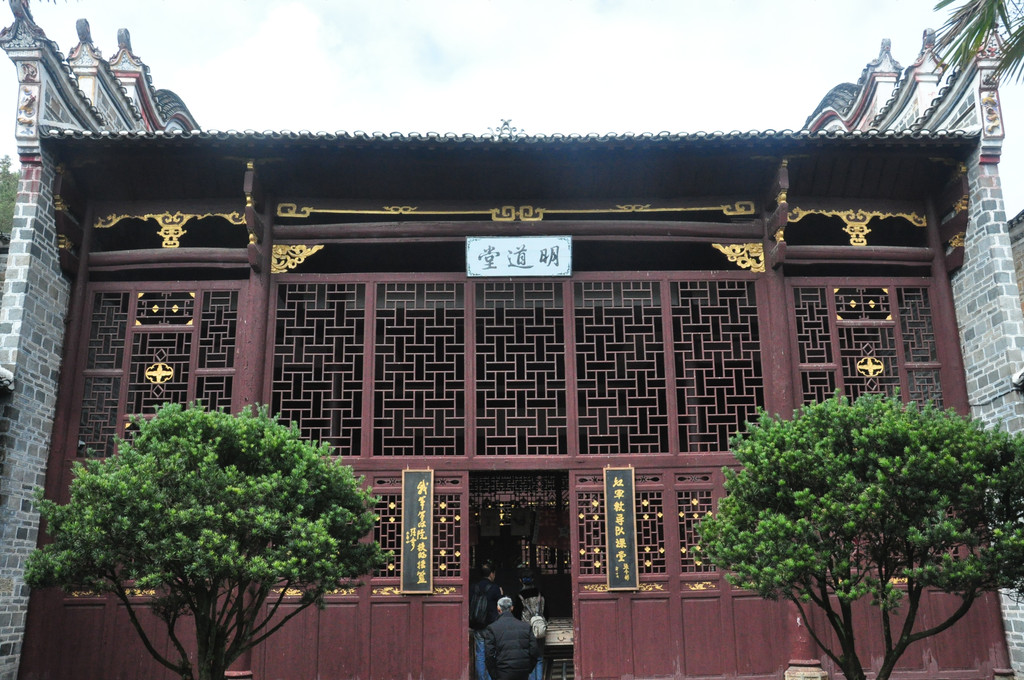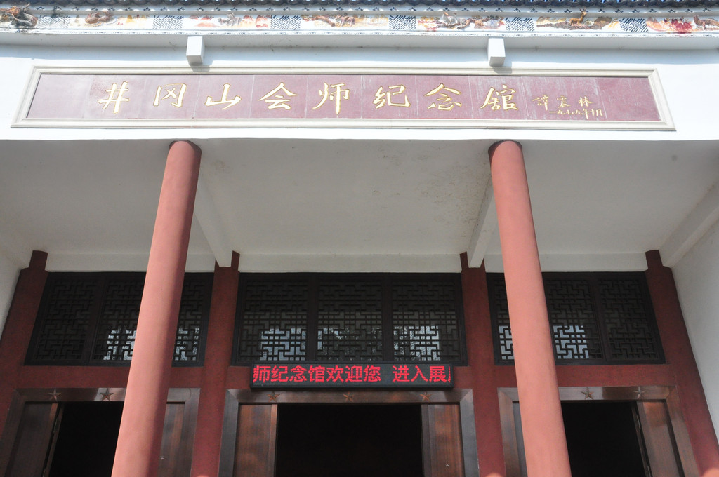 井冈山这条北线是一条红色线路,是井冈山主要线路之一,它包括会师广场,龙江书院,八角楼,象山庵,黄洋界等。我们乘车到达第一个景点是会师广场,会师广场位于砻市龙江河东侧。1928年5月4日,2万多人在此隆重召开军民大会,庆祝两军会师和中国工农红军第四军(后改称中国红军第四军)成立。当年,这里是一块沙洲,开会的会台是用禾桶、木头、门板搭成的,顶上覆盖晒垫。新中国成立后,原貌修复,并在会台前方矗立了一尊毛泽东、朱德握手铜像,以纪念朱毛会师和红四军的诞生。简单拍照以后,步行不远就是龙江书院,龙江书院,位于江西省井冈山市龙市镇,始建于公元1840年(清道光二十年)。是由原宁冈、酃县、茶陵三县的客籍绅民捐款集资修建的,是当年三县客籍人的最高学府。书院始建于公元1840年(清道光二十年)春,完工于公元1843年(清道光二十三年)秋,因背靠五虎岭、面临龙江河,故取此名,是当时湘赣边界客家子弟念书就读的重要场所。 龙江书院坐西南朝东北,砖木混合结构,穿斗式梁架,封火硬山墙,阴阳瓦屋面,由前后三进,左中右三组,以中轴线对称布局而成的一个建筑组群。通面阔38.16米,通进深53.40米,占地面积2037.7平方米。中间为门厅,大门门首悬挂“龙江书院”黑漆描金木匾,中厅“明道堂”为授课场所,后进“文星阁”可登高远眺,依次以天井相接。左右回廊与两侧厢房相通,分别设有启秀斋、珍席斋、锦心斋、报功祠、漱芳斋、梯云斋、步月斋、崇文祠。书院前用麻石条砌置泮池,辟“状元桥”拱跨其上。整个书院建筑具民族建筑风格,雕栏画栋,悬檐翘角,宇内九井十八厅,回廊曲径相通;文星阁高达三层,斗拱挑檐,恢宏壮观,阁顶藻井饰双龙戏珠浮雕,栩栩如生。1928年4月龙江书院成为中央红军在井冈山的重要机关所在地。
