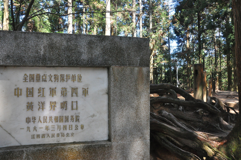 参观过几个红色景点,返回到黄洋界,黄洋界位于距茨坪西北面十七公里,是人文和自然景观相结合的景区。黄洋界山顶海拔1343米,这里峰峦叠嶂,地势险峻,气象万千,时常弥漫着茫茫的云雾,好像汪洋大海一望无际,故又名:汪洋界。黄洋界景区包括:黄洋界、大井,八面山和上井。