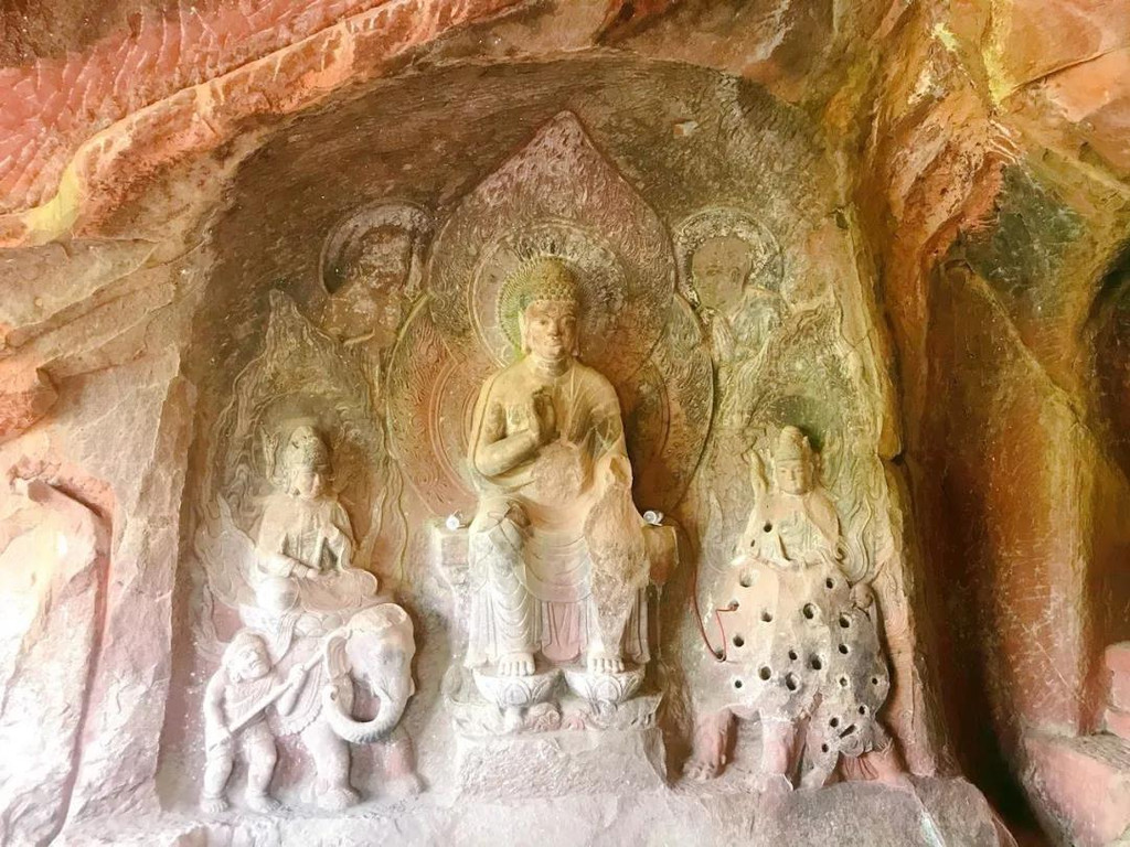 最让人惊喜的是,在这西南边陲地区无人问津的山中,竟然有五个建于唐宋时期的石窟。尽管从规模上没有石宝山大,但开凿时间与石宝山石窟时间相近,其艺术造型与风格可谓异曲同工。