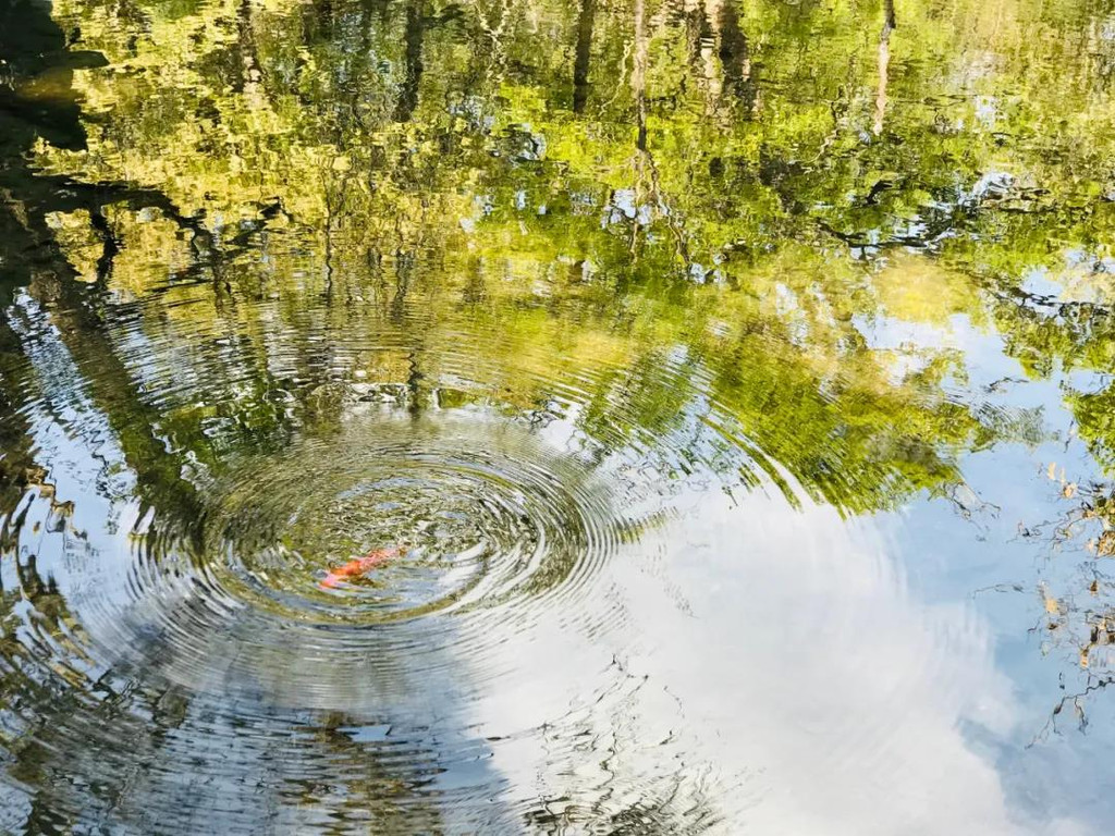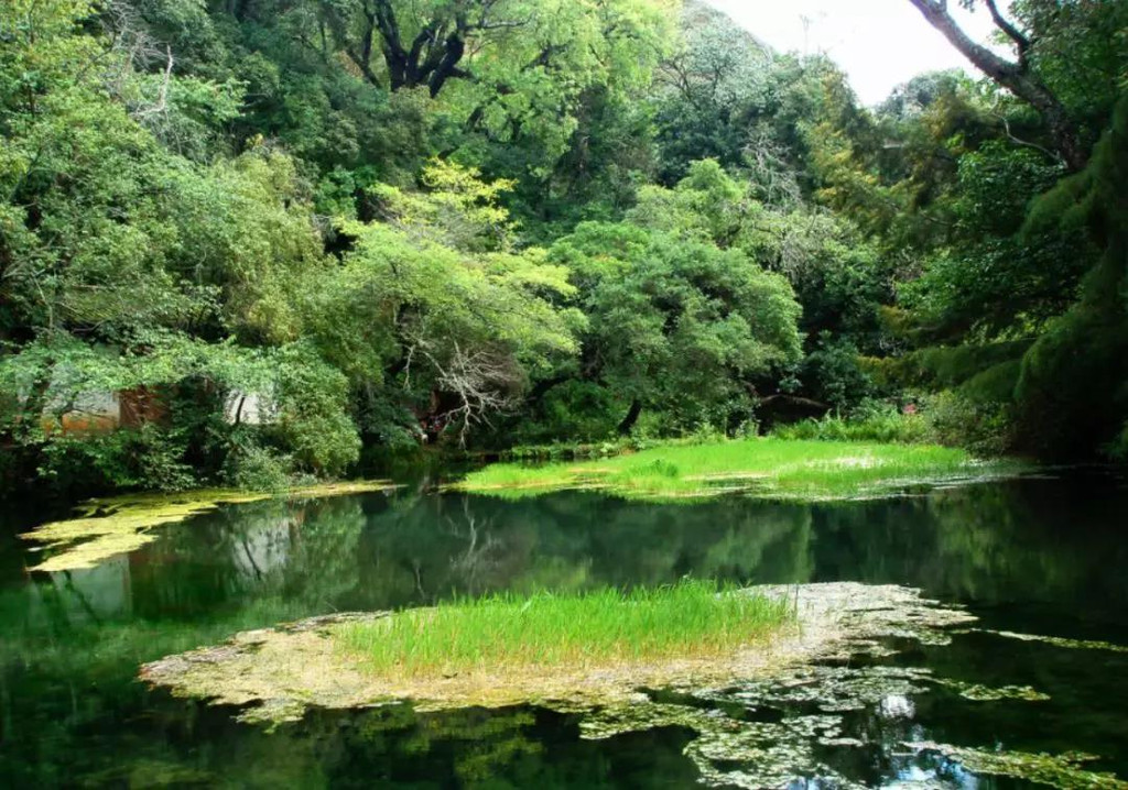 炎炎夏日,水底的绿藻把潭水映衬得碧绿,潭边静坐观光,顿感身心清凉。