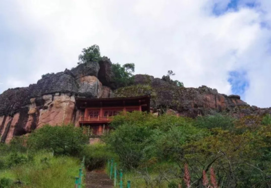上山途中还能看到茶马古道时期留下的红砂石马蹄印,以及一座被盗过多次的明朝古墓。还可以远远地看到建造在绝壁之上宝相寺。