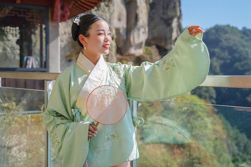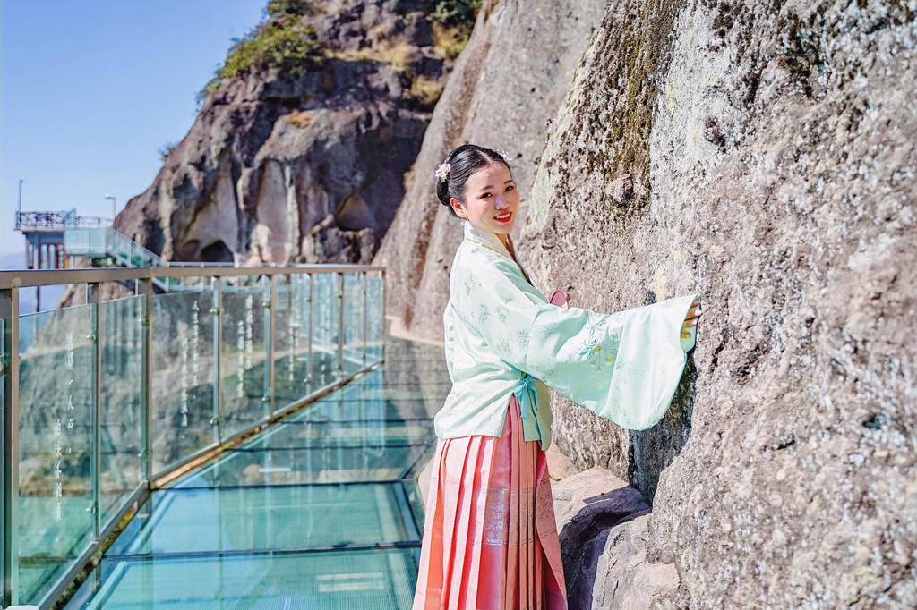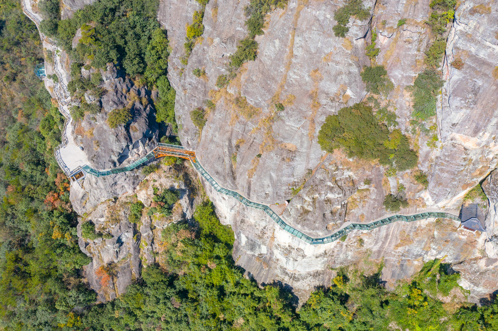 游过杏香斋,望后便是很网红的玻璃栈道,不知道你可有胆量上去走上一遭。整个栈道依山崖而建,随山崖起伏而变化,踩上面你会感受到山川在你脚下的豪迈感,当然胆小勿入,那么…你是胆小的那个吗?