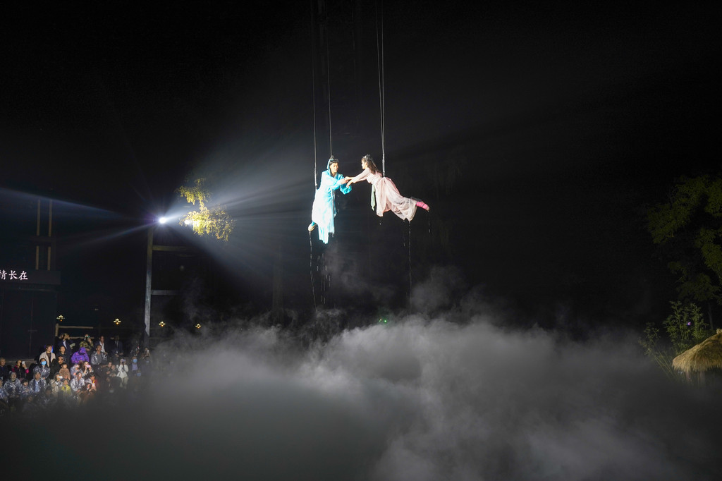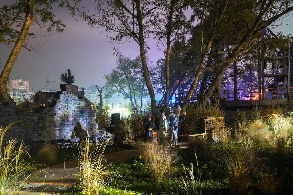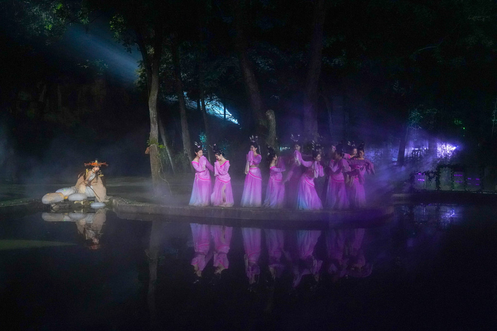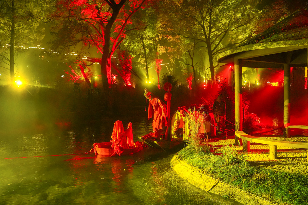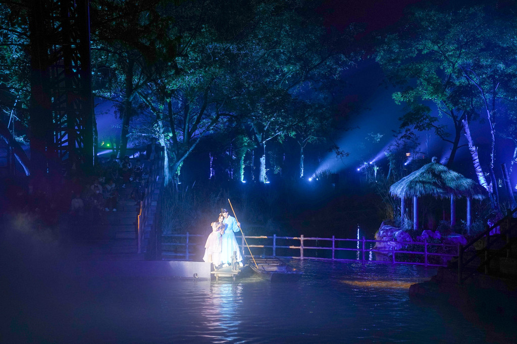 《江清月近人》是一个设置于建德月亮岛上的大型沉浸式实景演出项目,演出源于唐代诗人孟浩然著名的宿建德江诗句。通过环岛观看的方式行进的沉浸式观演,由“江、清、月、近、人”五个演区构成一台串珠分布而又相互关联的完整实景演出。