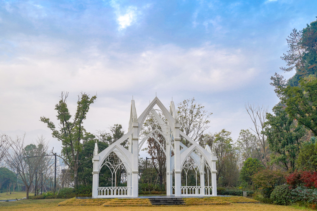 在未进入酒店时便被旁边的一座造型奇特的欧式建筑吸引了 ,建筑仿哥特式样式,扶壁抟上,穹顶刺天,雪白的建筑与天空分割霎时美丽。
