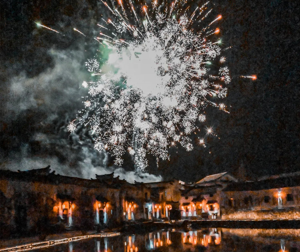 当华灯初上,还能看到美丽的烟花秀,当烟花在空中绽放,照亮整个村庄的那一瞬间,十分浪漫。据说这是为留在建德过年的异乡人而准备的。如果你今年在建德过年,那一定要来看看这古村里的璀璨烟火!
