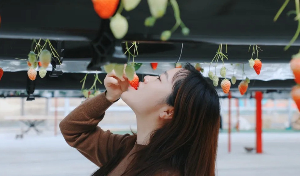 在草莓小镇采摘草莓,你会见到世界各地的40余种草莓品种,像红颜、章姬、越心、越秀、白雪公主……好吃得让你停不下来。这里的草莓都是清洁化大棚栽培、生物防治的草莓,特别干净、安全,可以放心地边采边吃。