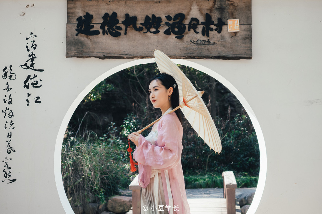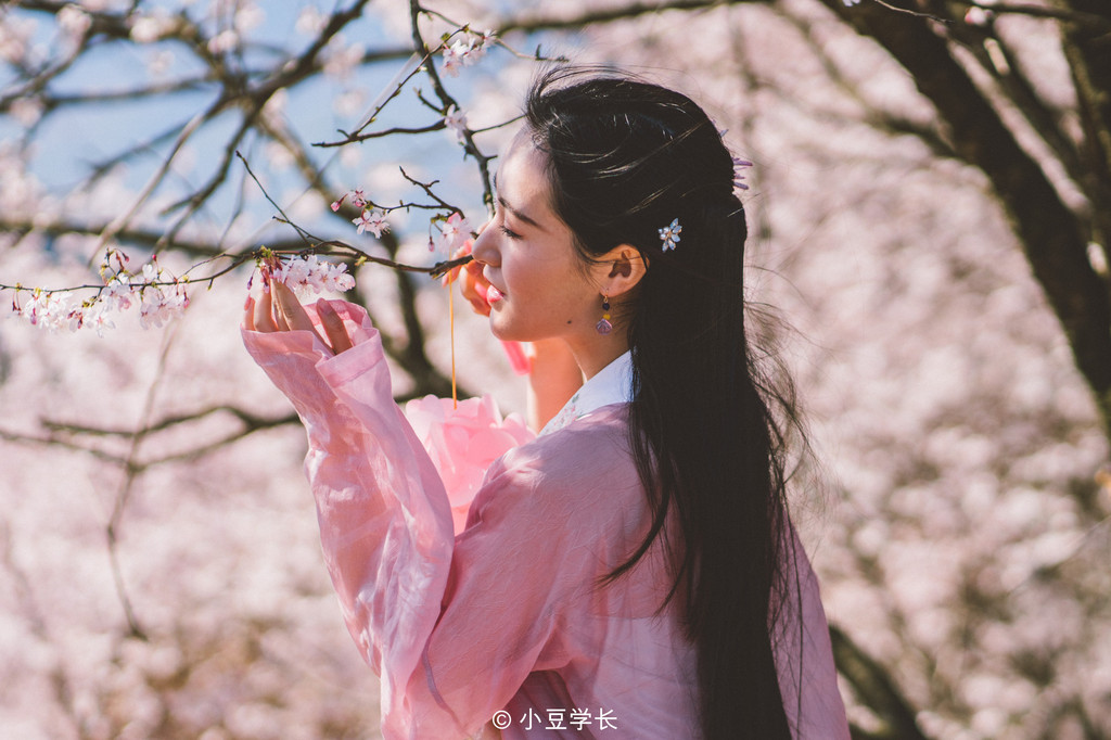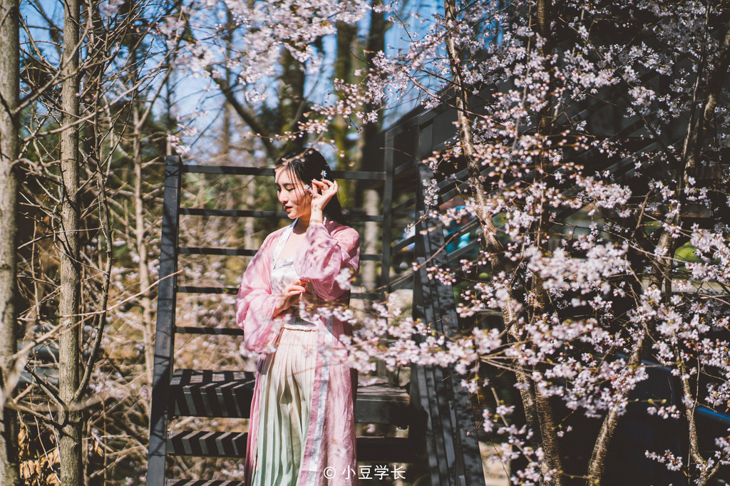 和樱花同色系的汉服,颜色相互呼应,春天了是应该拍一组写真了。