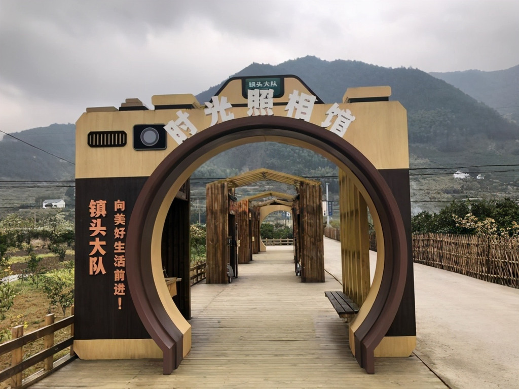 砖色的小围墙,弯曲的沥青小路的白墙上绘制着镇头村在修建水库时发生的点滴。跟随它的指引,你便会沉浸在镇头村“浓浓的乡愁”中。