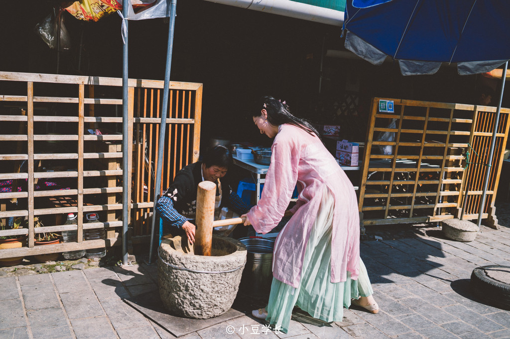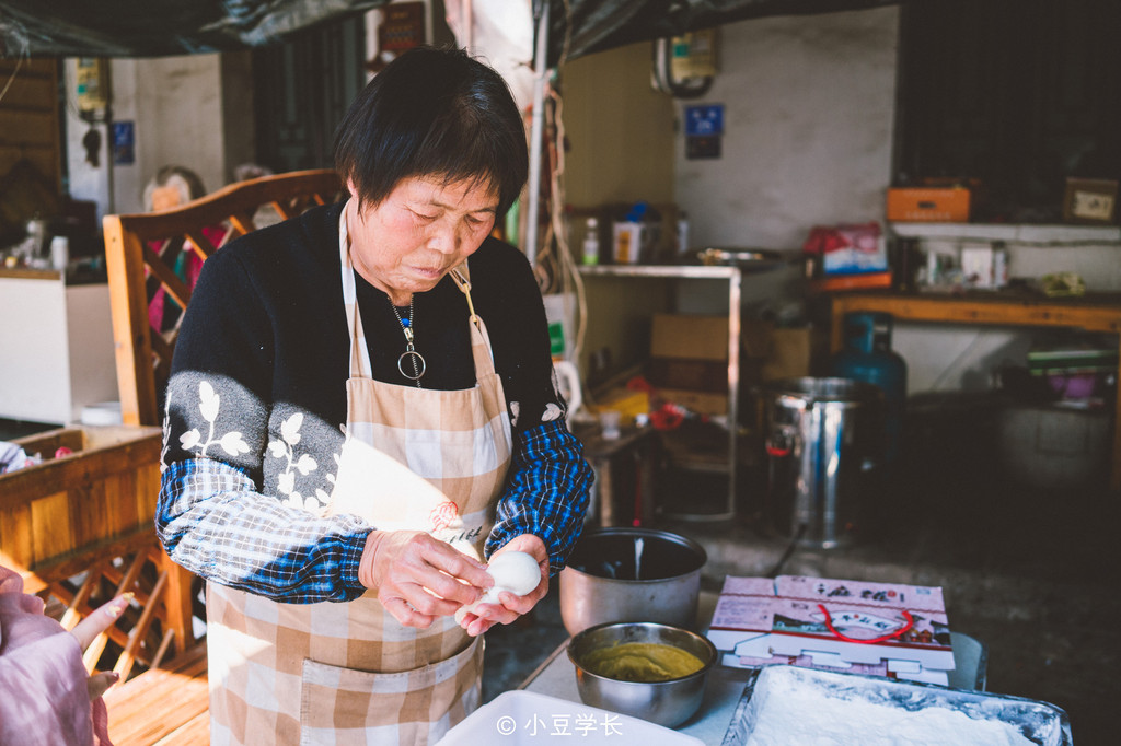 三都镇三都渔村做麻糍的很多,一直沿用古法,纯手工制作,很讲究。凌晨三四点钟浸糯米,三四个小时后上土灶,用饭甑蒸熟。