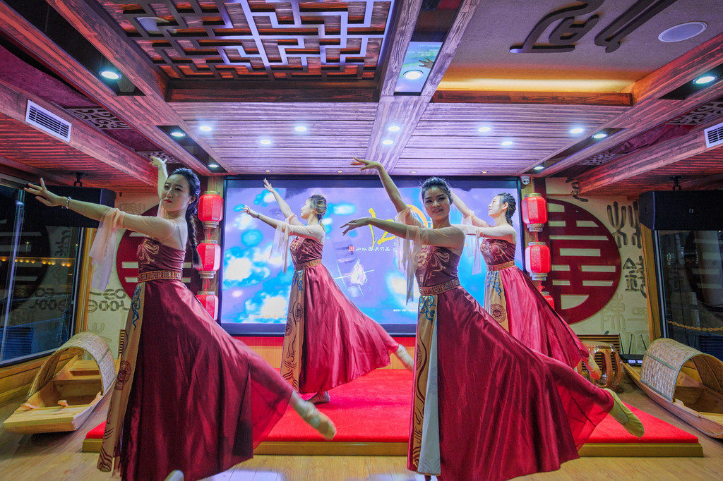 船舱“建德九姓渔民”主题的内饰设计将渔民水上婚礼场景拉近到了眼前。