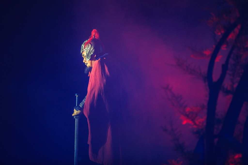 演出也在一声婴儿的啼哭声中告一段落,这一段演出的场景色彩极为炫目,虽不及前一幕刀光剑影、硝烟弥漫的战场,但是依旧用祥和、欢乐的婚礼制造出及其唯美的氛围,让人久久不能忘怀。