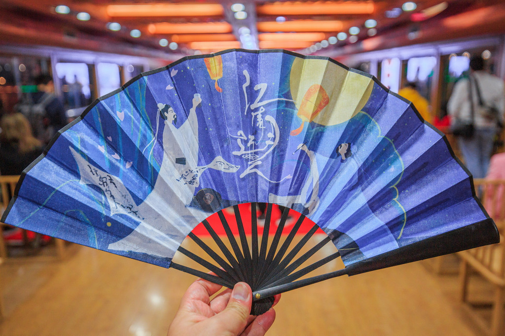期初在码头登船的那一刻还真是差点以为整个演出就在船上进行的,其实不然,搭乘“江清月近人号”主题游船的目的主要是让游客在欣赏演出之前可以一览新安江两岸的美丽夜景,而在船上也有实景演出的部分演员和游客互动演出。