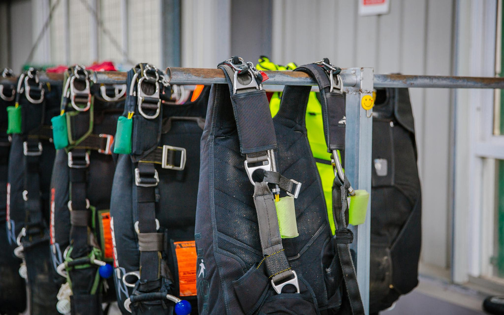 到达航空小镇的跳伞基地之后,根据我们订票时量的身高体重,工作人员会给我们发放专有的服装、头盔、防风镜、防风手套、氧气罩等,并配备个人的飞行教练,一切准备妥当之后,开始实战跳伞!