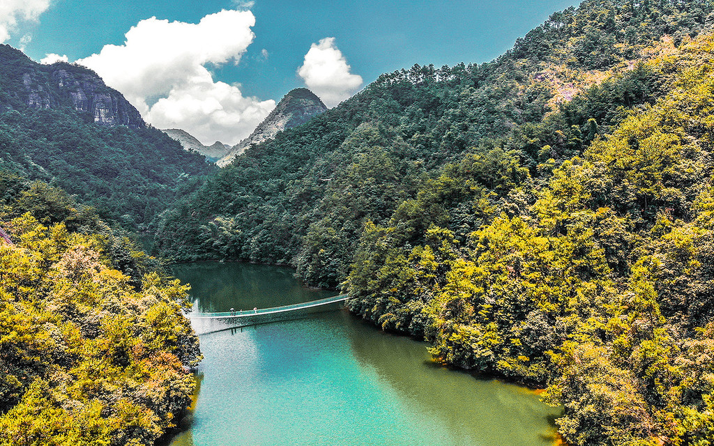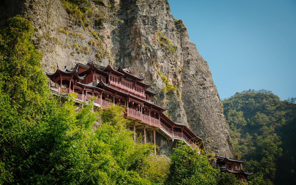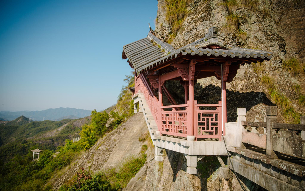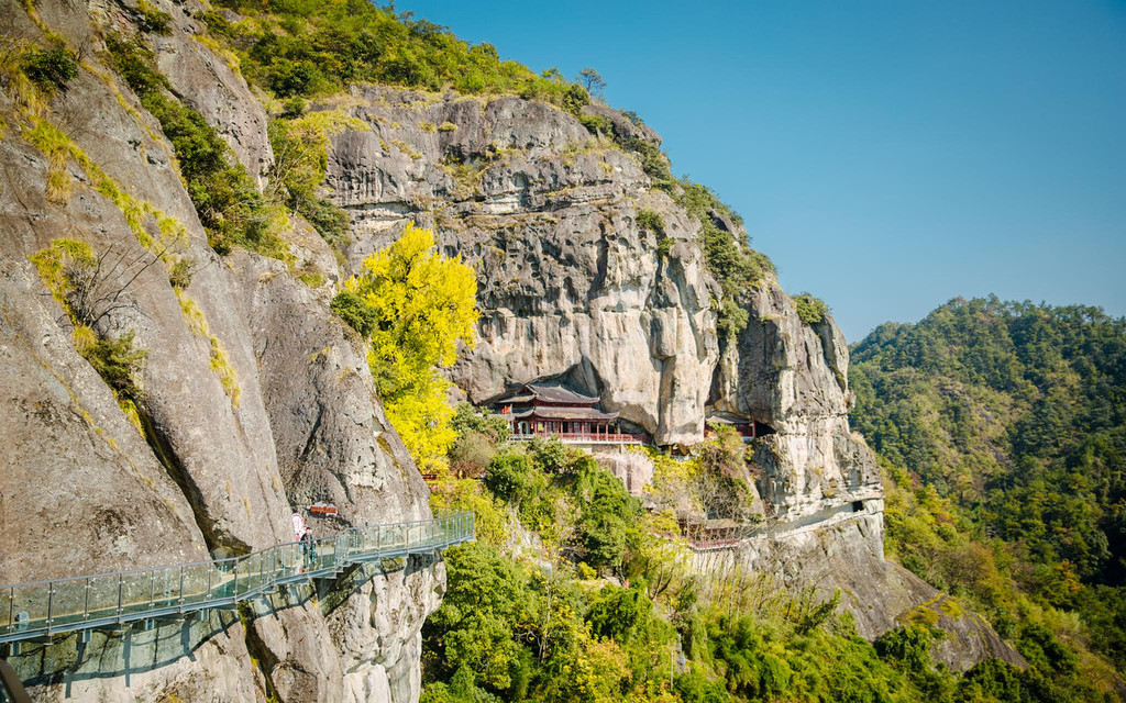 若是有一番好兴致,还可以在玉华湖长约百米的索桥上走上一遭,感受下悬空荡秋千的惊险与刺激。脚下是一泓透彻碧澄的湖水,眼前是伟岸雄奇的青山秀水,700年来的风吹日晒,地动山摇,这座 江南 唯一的悬空寺依然屹立于此,接受来来往往游人的观赏游览~