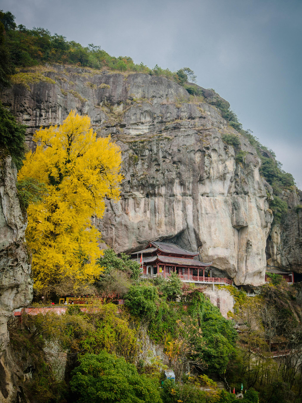 深秋的大慈岩,已换上了华贵的新衣,红的富贵,黄的锦绣,层层叠叠,美不胜收。而这次来建德,除了想要欣赏新叶古村的风采,还想一睹“杭州最美银杏”最灿烂的笑容。
