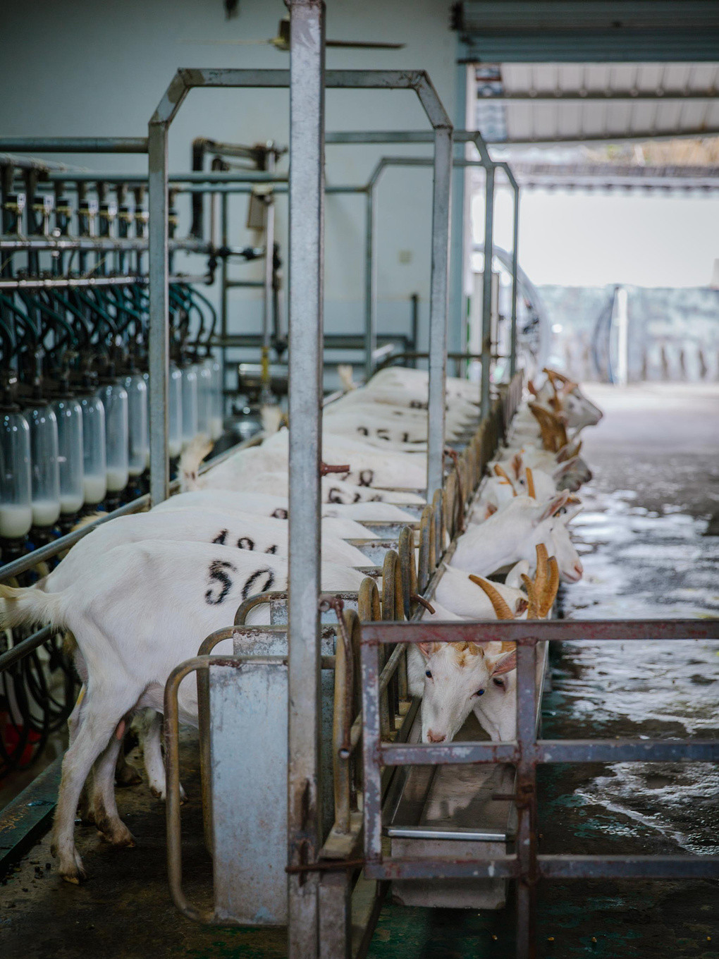 仔细瞧着,这里的萨能奶山羊还有自己专门的“别墅”哦,奶山羊的居住环境以及喂养的方式全部都是参照了瑞士的萨能谷,条件那是相当的好。