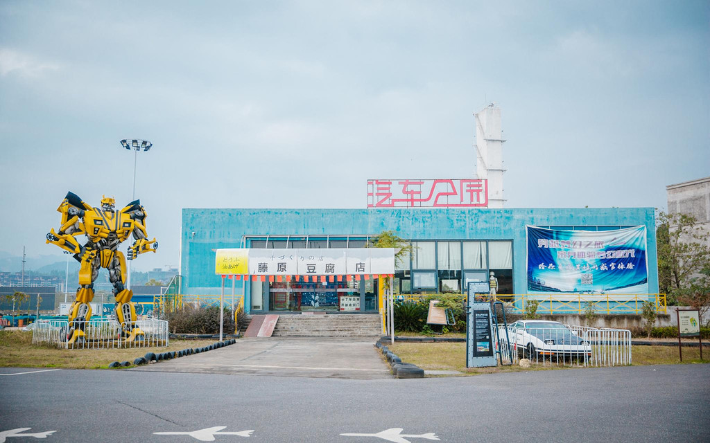 继续往前位于航空小镇内的富林山汽车公园,是一个集汽车赛事、休闲娱乐、文化创意、科技创新等为一体的多功能汽车主题公园。入口处的大黄蜂模型,无比引人注目。