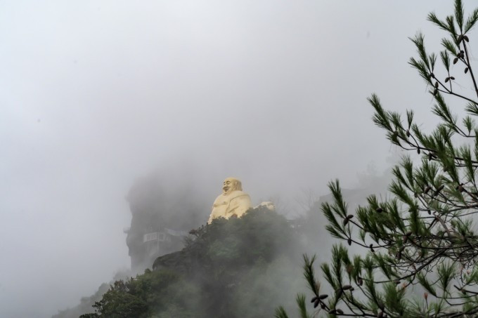拾级而上,顺着栈道一路走到双面佛像跟前一睹真容。双面佛金光闪闪,在山下就能远远看到。