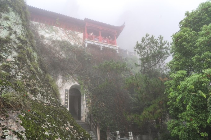 从双面佛那里继续往下走,在悬崖边上个厕所,就到了天香悬廊。走过悬廊就到达绿水庵,这样不走回头路。